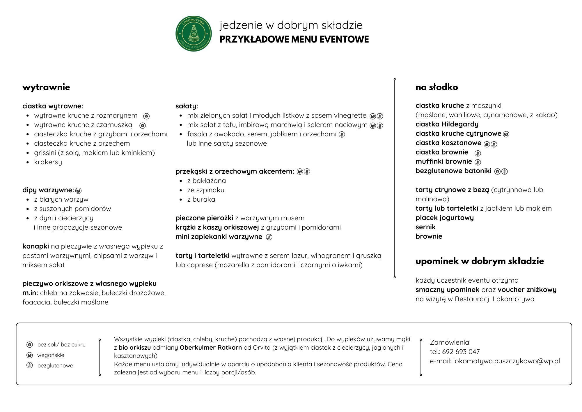 Zdrowe eventy i catering dla firm – dbamy o zdrowie Twoich pracowników i gości, oferując zdrowy catering dla firm, który obejmuje pyszne dania zarówno na ciepło, jak i w formie zimnego bufetu, przekąski, pasty, sałatki oraz wypieki. Wszystkie nasze słodkie i wytrawne wypieki są przygotowywane z mąki orkiszowej, co sprawia, że są one nie tylko smaczne, ale również zdrowe.